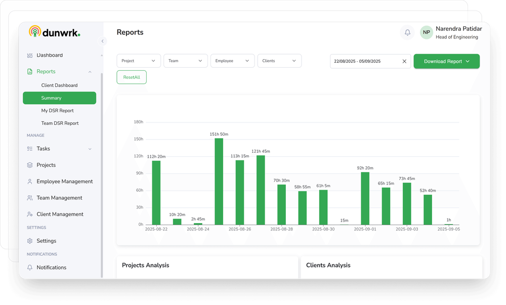 Stop guessing where time goes and start making decisions based on real work data. Dunwrk helps you stay in control of tasks, time, and team performance all from one place.