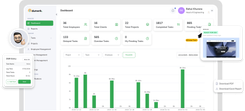 Managers view dashboards showing task status, time spent, and daily reports across teams.